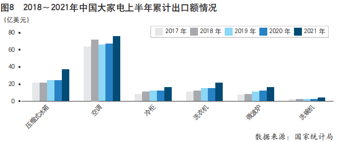 2021年上半年,中国家电业对所有经济区的出口表现均持续强劲,但增速趋于回落,发达经济体的增长引擎地位依然突出。